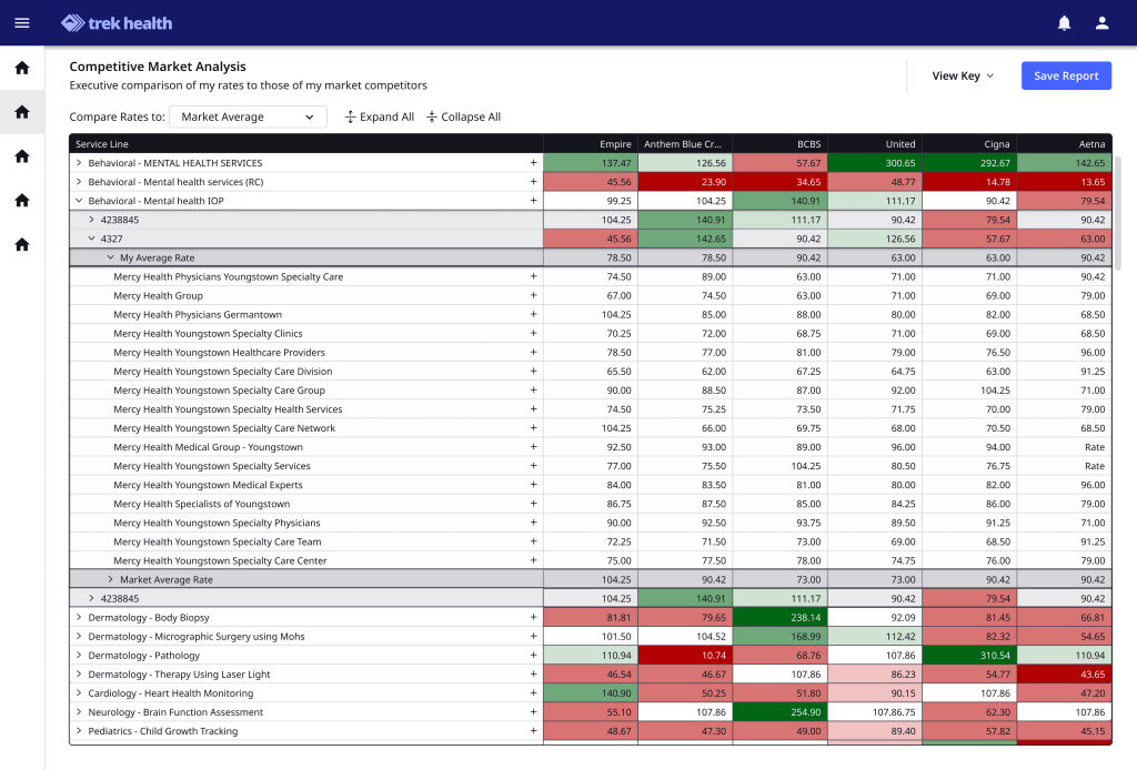 Payer transparency regulations have opened the floodgates to an overwhelming amount of pricing data. But raw files alone won’t improve your bottom line. Trek Health’s CMA tool transforms those datasets into negotiation-ready insights—so you can stop guessing and start leveraging.