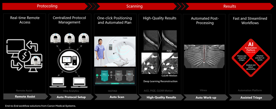 - Consistent quality and efficiency: Standardized, step-by-step workflows minimize user variability and errors, ensuring uniform exam quality across technologists. This will also result in higher-quality examinations that can increase diagnostic confidence by the interpreting radiologist. Technologists can work more efficiently and focus on patient care, which boosts throughput.