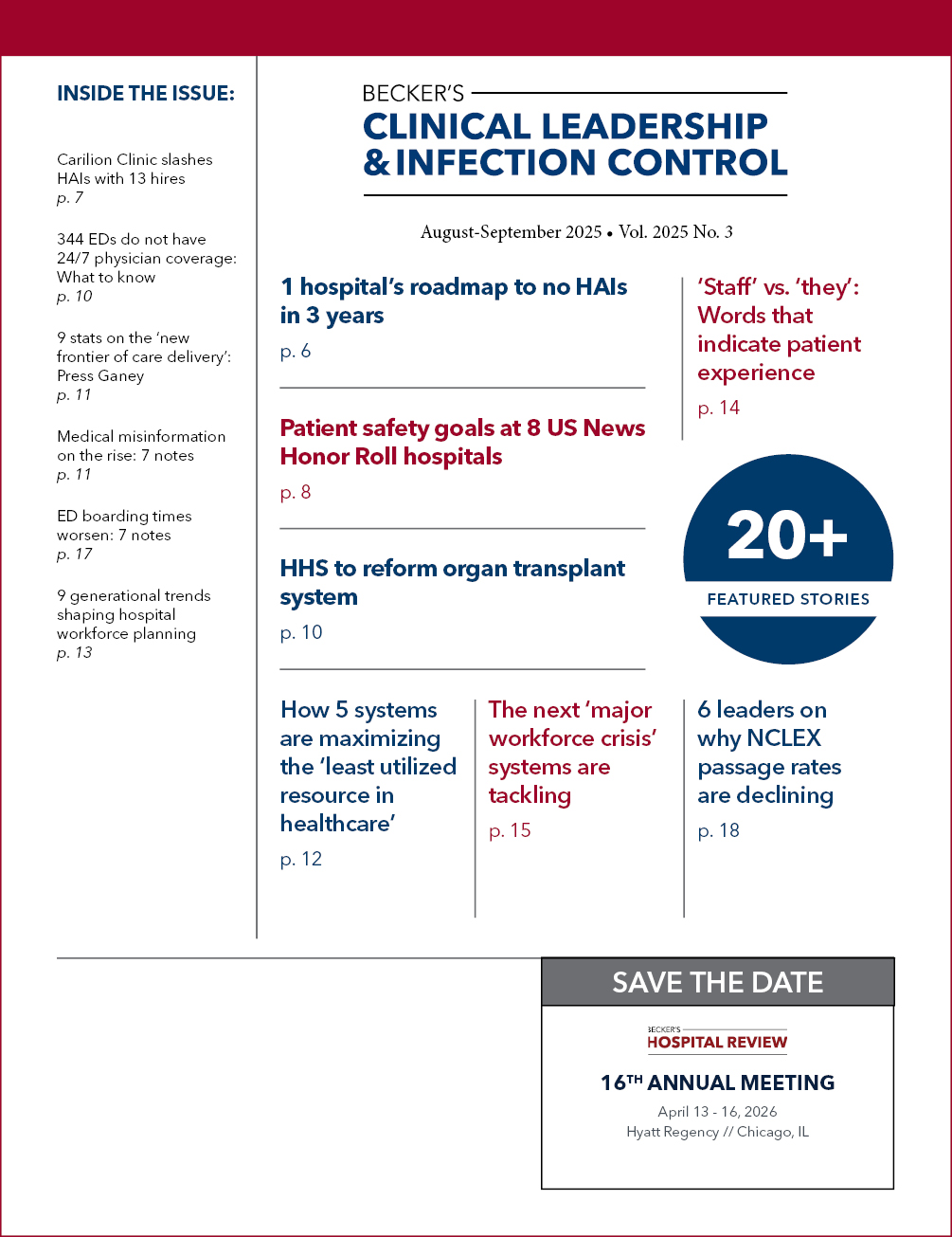 August/September 2025 Issue of Becker’s Clinical Leadership & Infection Control